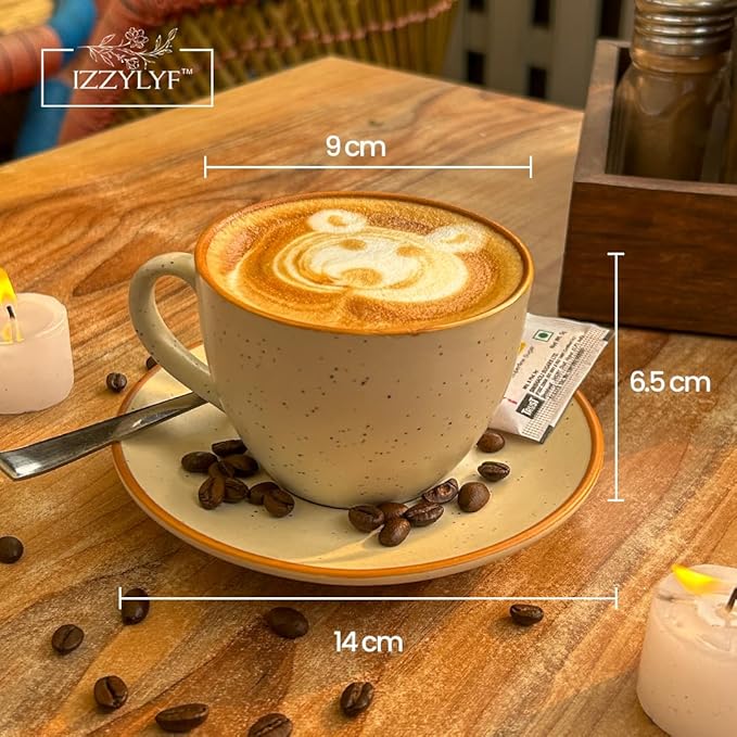 - Package content : Cream White Ceramic Cappuccino Coffee Cups Set with Saucer plate Special for Cappuccino Coffee Drinks, Latte, Café Mocha, and Tea - pack of 6 Cup & 6 Saucer - 250 ml