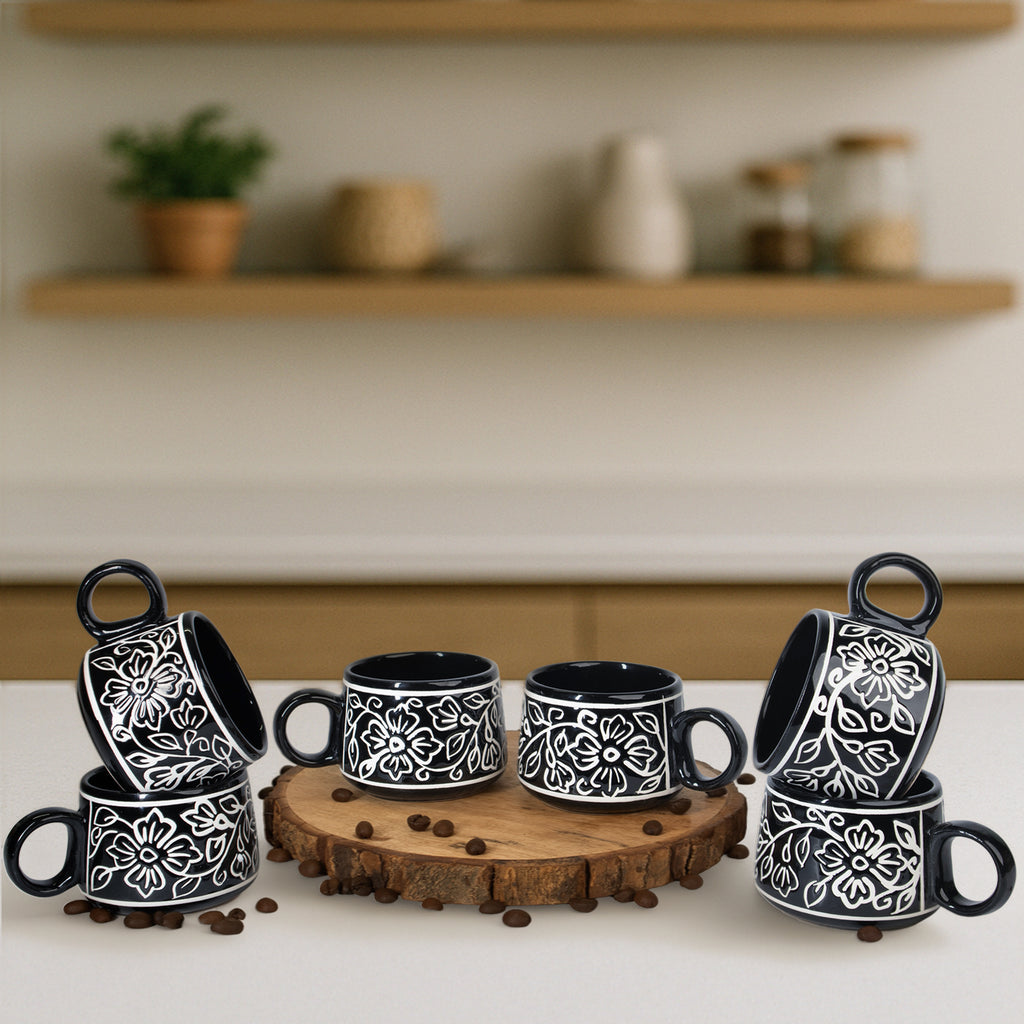 - Elevate Tea Time with the Crafted Black Mughal' Ceramic Kettle Tea Set : Featuring 6 elegant cups and 1 kettle, this Crafted set showcases a charming Mughal floral-inspired design. Perfect for serving tea, coffee, milk, and more—stylish, versatile, and ideal for any occasion!