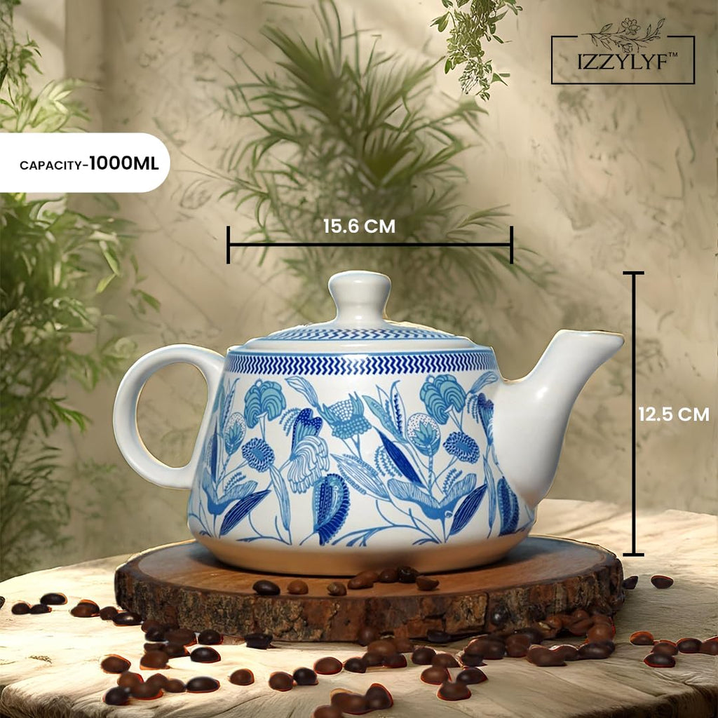 - Elevate Tea Time with the Blue Garden Whispers Tea Set: Featuring 6 elegant cups and 1 kettle, this printed mat-finish set is perfect for serving tea, coffee, milk, and more. Stylish, versatile, and ideal for any occasion!